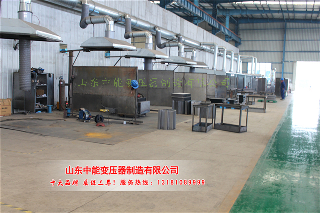 铁心材料选用优质高导磁冷轧取向硅钢片,铁心加工采用乔格线剪切,全斜阶梯接缝结构,无孔绑扎,板式夹件结构。
