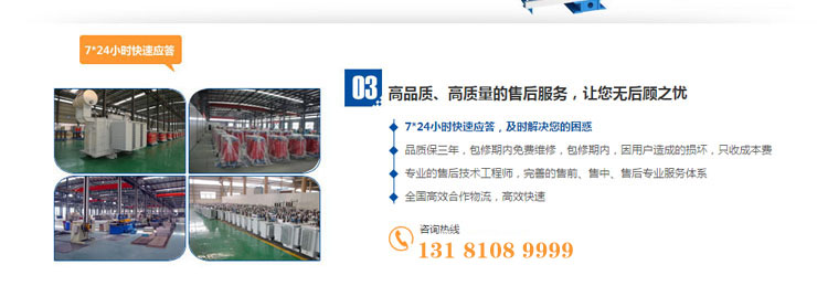 3、线圈不吸潮,铁心、夹件经过特殊工艺处理可在1OO%相对湿度和其它恶劣环境中运行。间断运行无须去潮处理。